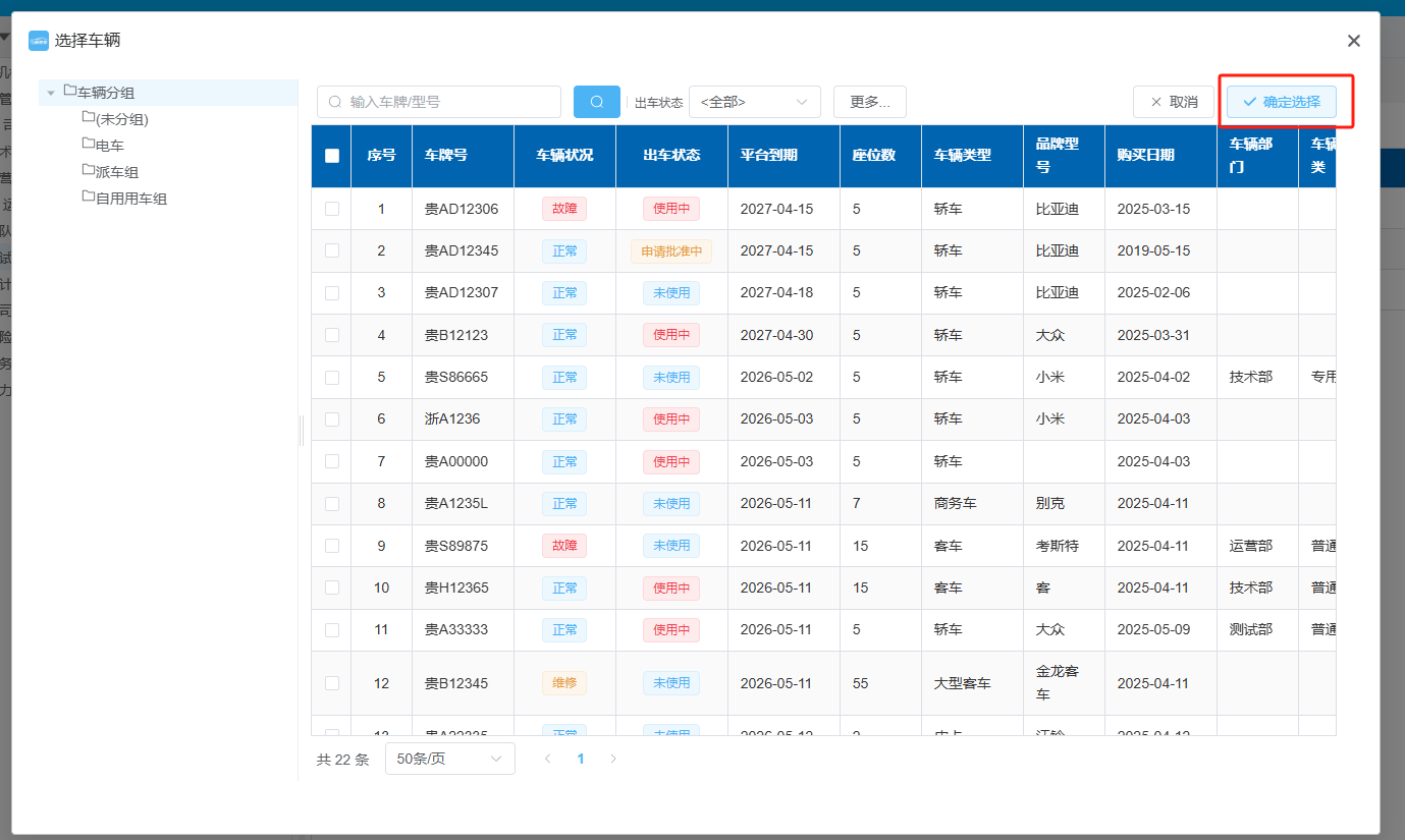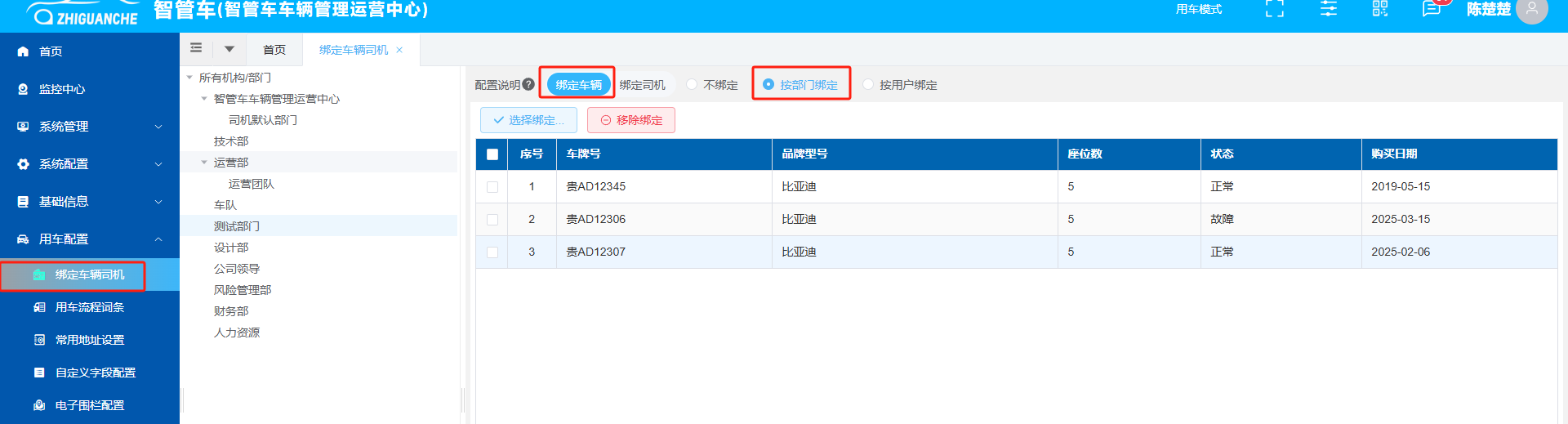 按部门绑定车辆