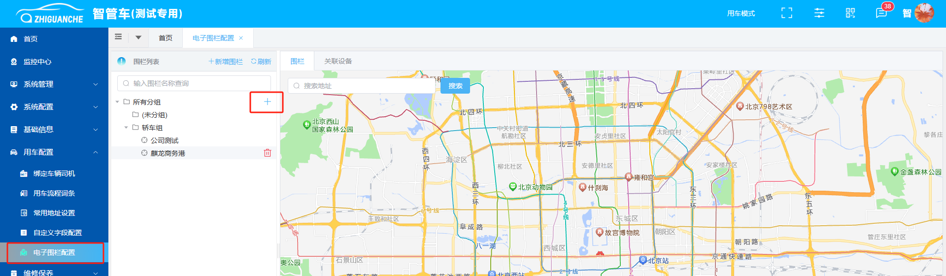 “+”创建围栏分组,以便对不同分组的设备添加独立围栏;
