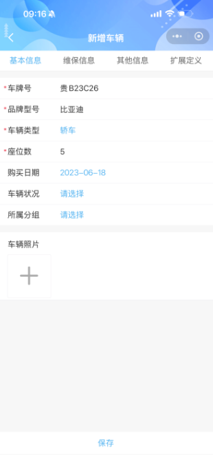 车辆信息作为车辆管理系统的最基本信息,必须录入。分车辆基本信息、维保信息、其他信息和扩展信息。
