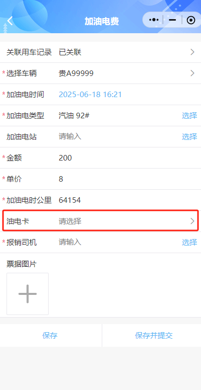 添加加油费时,如单位有油卡,并已在系统录入,可在填写加油记录时选择对应油卡,记录存档后将扣除相应油卡余额。