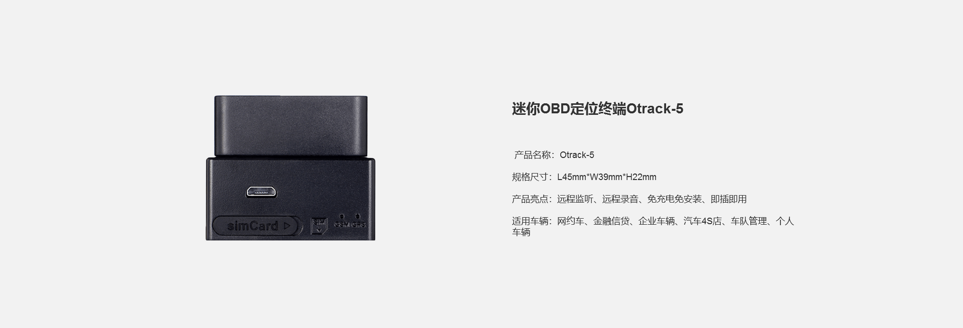 智管车OBD追踪定位终端采用OBD接口设计,即插即用,无需专业安装,5分钟即可完成部署。设备支持24小时全天候监控车辆,具备远程录音功能,采用三重定位技术,定位更快更精准。适用于2004年以后生产的所有汽油车型。